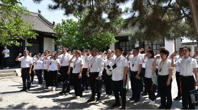 踏寻红色旧址,重温铁血誓言。在讲解员的引领下,全体成员走进一二九师司令部旧址,沉浸式感受那段波澜壮阔的革命岁月。面对鲜红的中国共产党党旗,党员们身姿挺拔、列队整齐,在党委委员李炜同志的领誓下,高举右拳庄严宣誓。铿锵有力的誓言回荡在旧址上空,不仅是对入党初心的深情回望,更是新时代党员干部践行使命的坚定承诺。