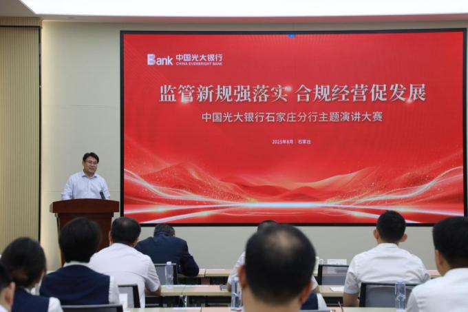 为深入贯彻落实中央金融工作会议精神,促进全行积极培育和弘扬中国特色金融文化,以赛促学、以赛促干,推动《金融机构合规管理办法》有效落实,以有力有效的合规管理保障全行合规稳健经营和高质量发展,8月15日,石家庄分行举办“监管新规强落实,合规经营促发展”主题演讲大赛,分行党委书记、行长沈春华,党委委员、副行长张允中,党委委员、副行长王旭出席活动。